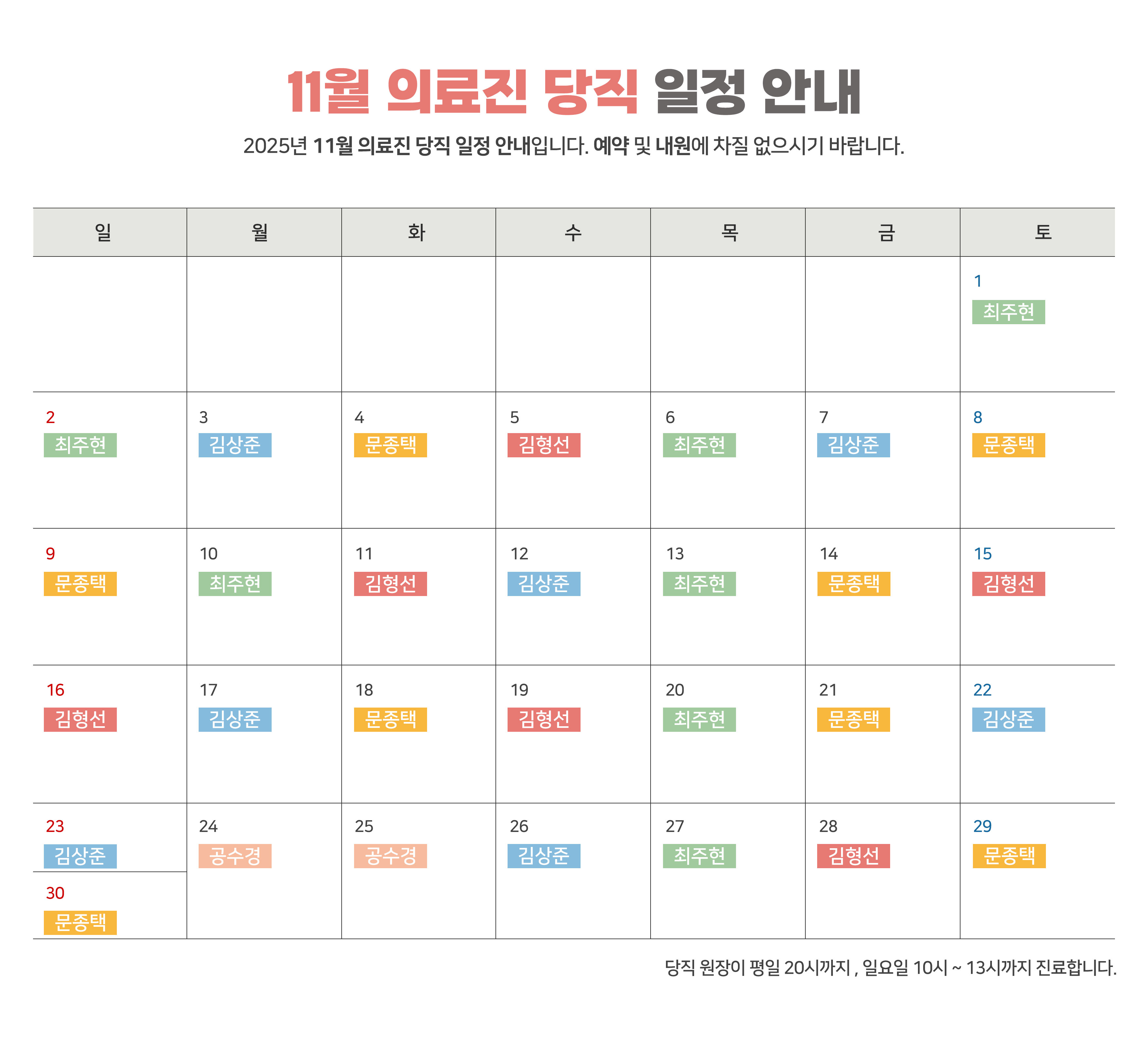 당직일정 리베르 여성병원 의료진의 당직일정을 빠르고 간편하게 확인하세요 11월 당직일정 작성자 liberwhospital 작성일 2025-10-10 15:18 조회 788 좋아요 0 싫어요 0 인쇄 « 10월 당직일정 12월 당직일정 » 목록보기
